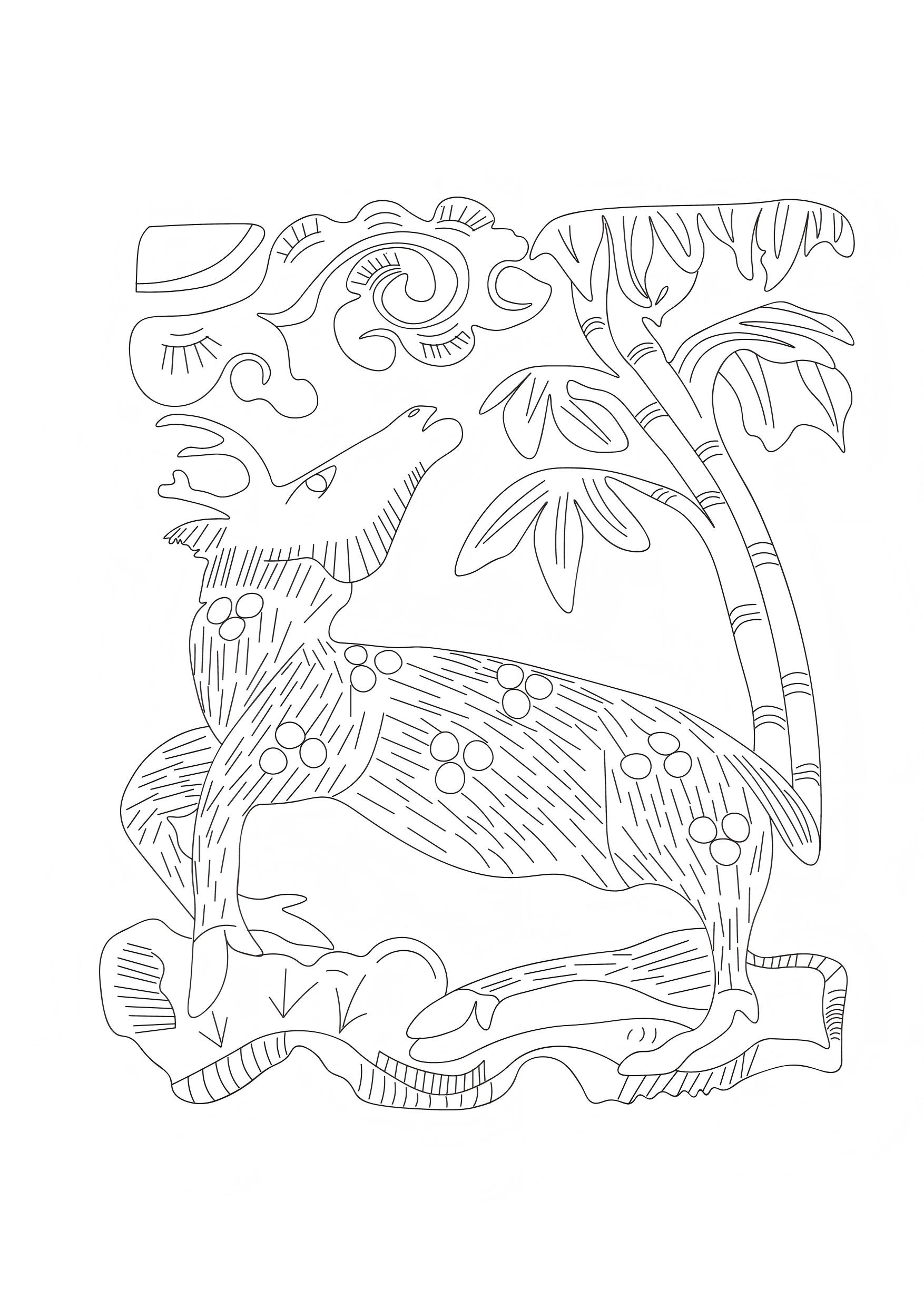 仙鹿纹样、卷云纹、竹纹